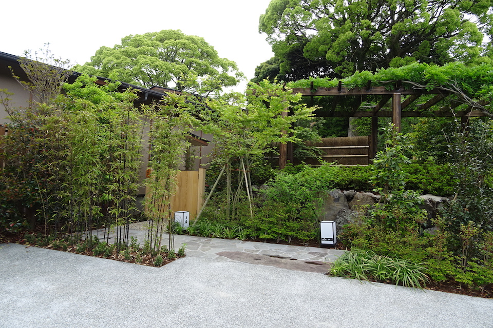 南の森はツル伐りや剪定を主とした整備にとどめ、ランドスケープによる和のおもてなしとして温泉×森林浴を裸で楽しめるヴィラである。