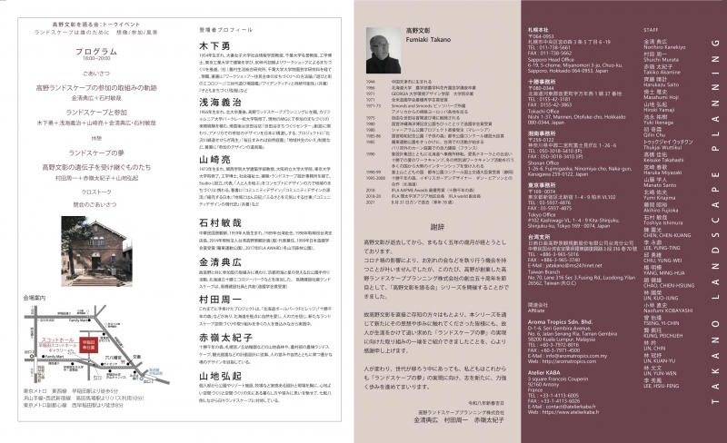 Even as people change and generations shift, we will continue to advance with renewed determination and strength toward realizing the “dream of landscape.” So, what kind of talk event will it be!? Stay tuned!
